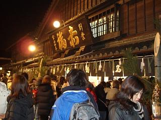 おなじみ伊勢名物赤福本店入り口前の写真。新年を迎えるとオールナイト営業の状態になります。 歴史と建物に風格があります。