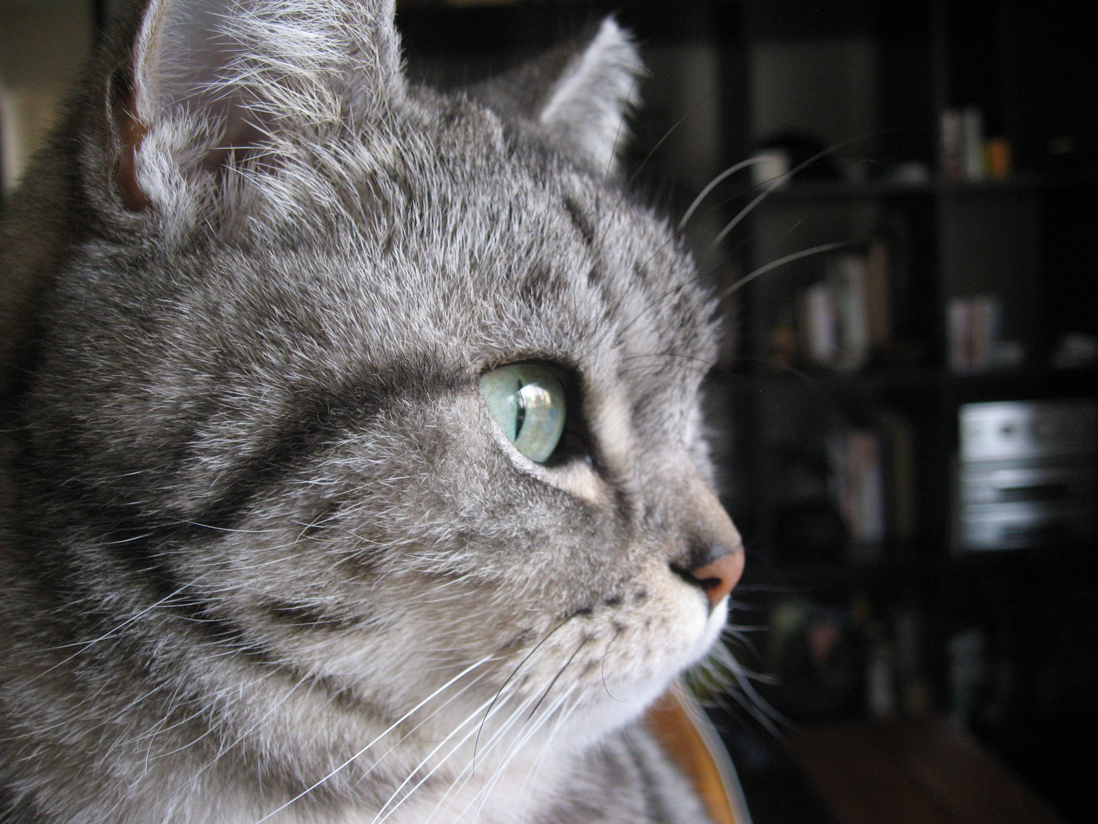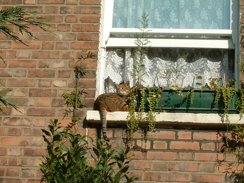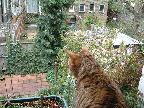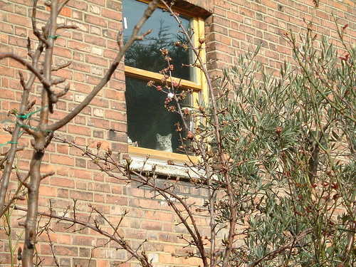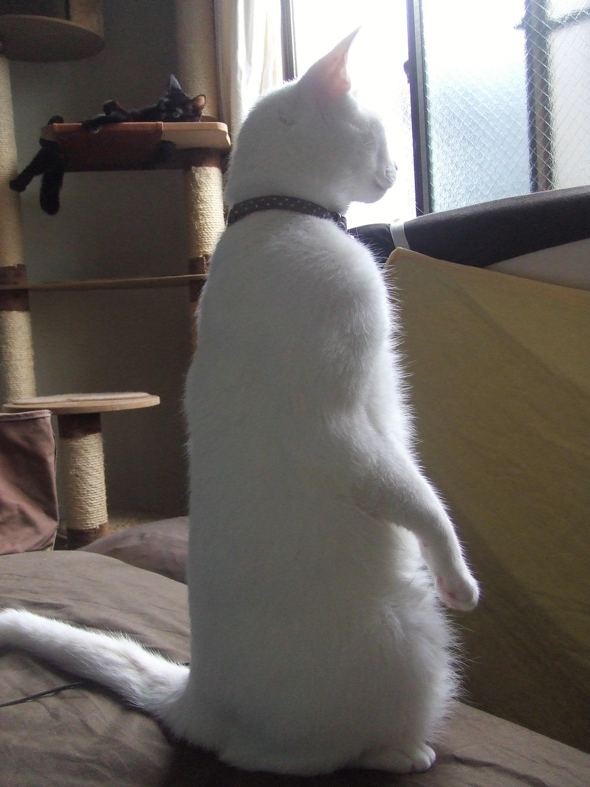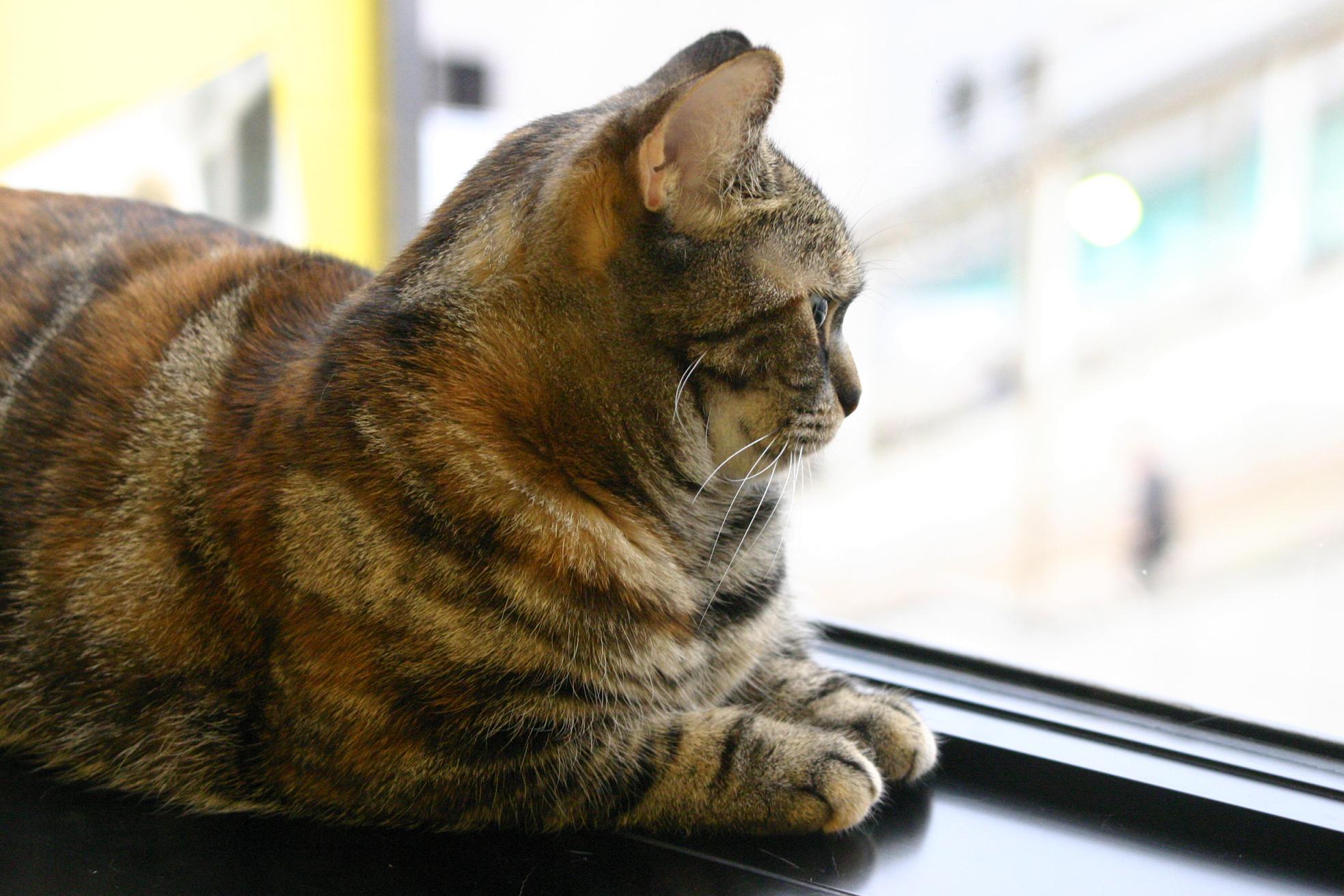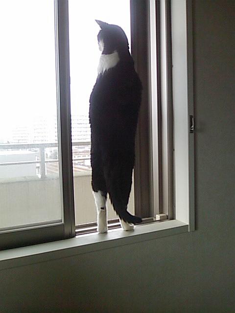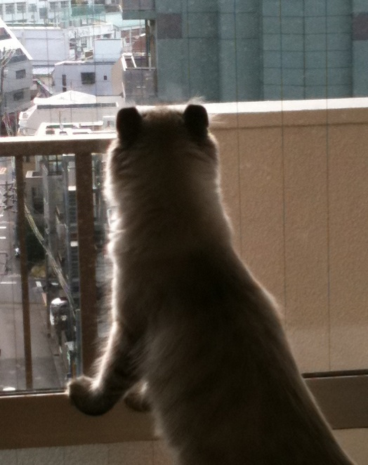 外に居る鳥に飛び掛ろうとするでもなく、尻尾をゆらゆら揺りながらとか、時にはなにか小さく「ニャゴニャゴ」と言いながら夢中で見て居ます。