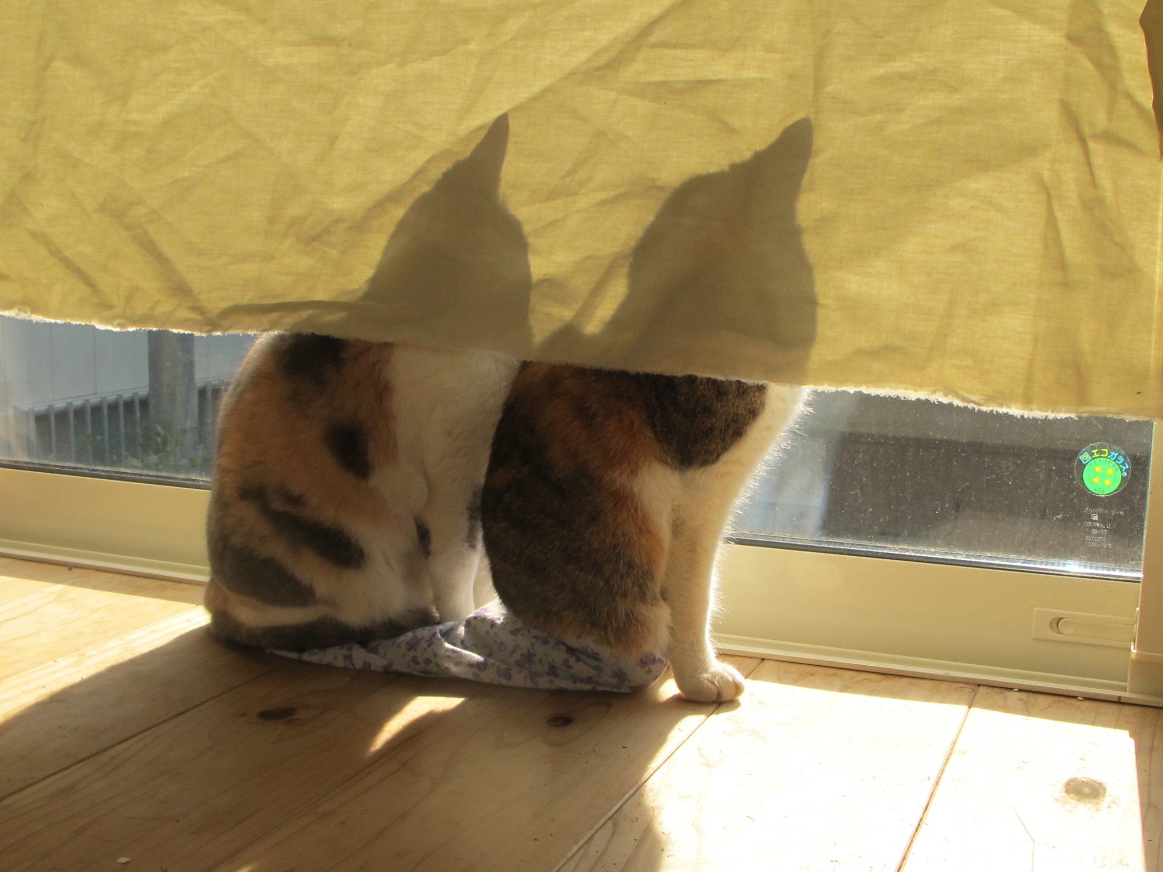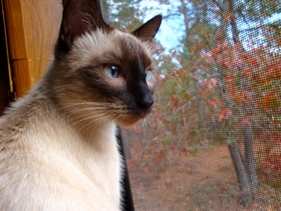 今年の夏はかなり暑く、周りが田畑で普段は涼しい我が家も毎晩寝苦しい状態。日が登る頃には暑くなり、目が覚めてふと見ると、猫が外を見ていました。