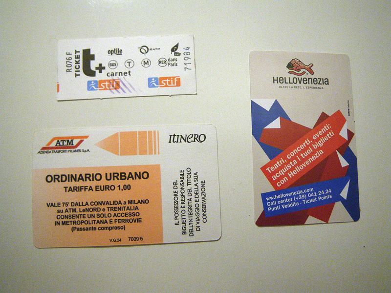 左下:ミラノ(イタリア)の地下鉄一回券