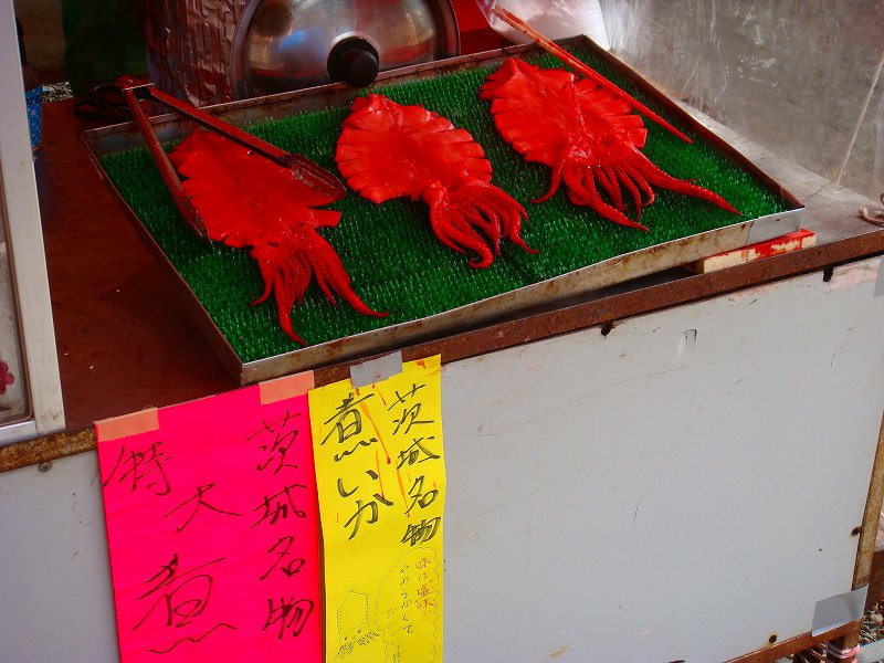 先日、梅まつりが始まった水戸市の偕楽園へ行ってきました。 煮いかの屋台は、3店ほど出店していました。 中には、『茨城名物』の張り紙もありました。 まだ、早い時間だった為か、煮いかの展示は少なかったですね。