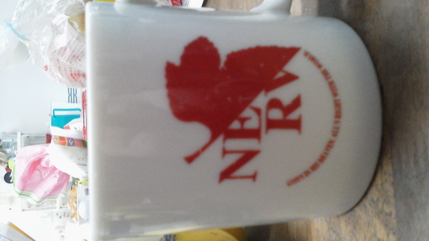 四年くらい前にネット通販で買ったエヴァのマグカップです。 写真は横になってしまいました。 中身は茶渋がつきまくっています。