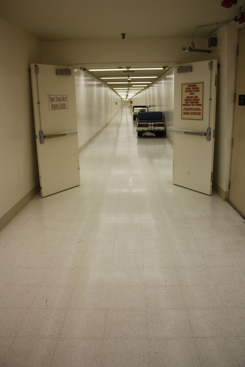 (左下)入口の様子。深夜は締め切られて通れなくなります。
