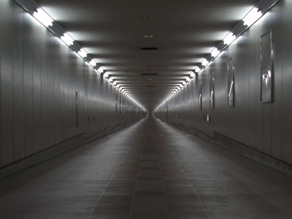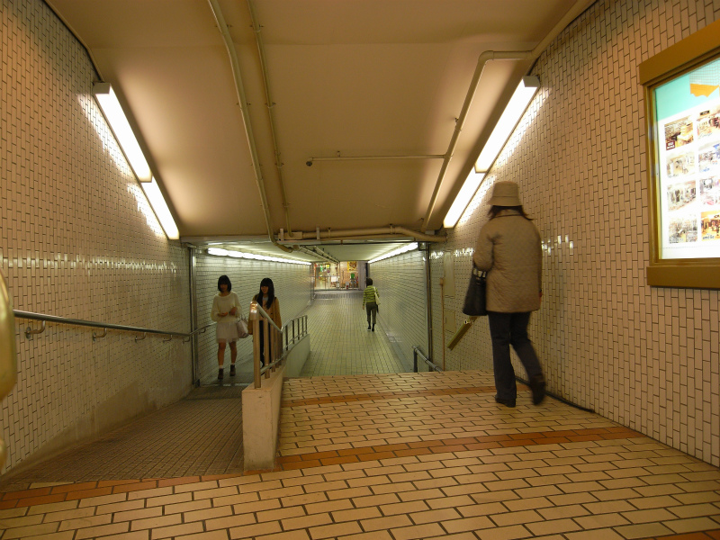 (右下)このトンネルを通らずに行くとすると、ご覧のような階段で丘の上まで登って、また反対側へ降りなければなりません。片方の出入口は地下鉄の駅に近いので、人通りは結構あります。
