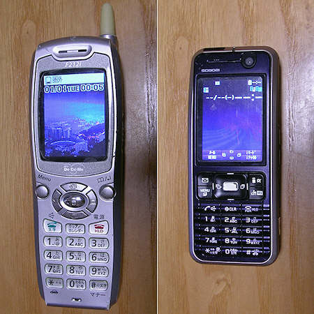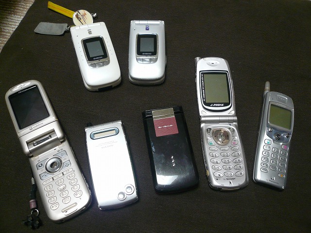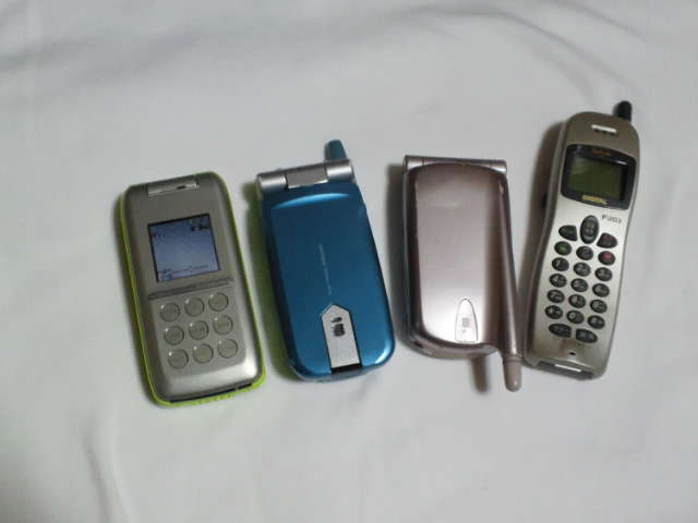左から右に旧いです。一番左のが生涯初ケータイ。Lバッテリーつけてました。それでなんとか会社で一日持つ程度でした。