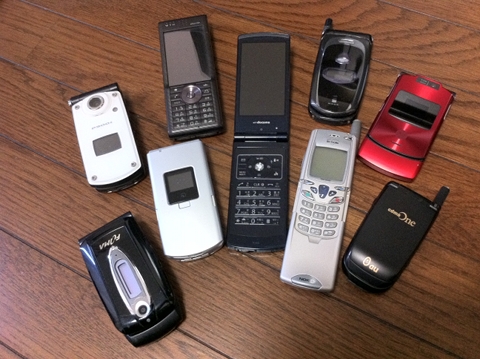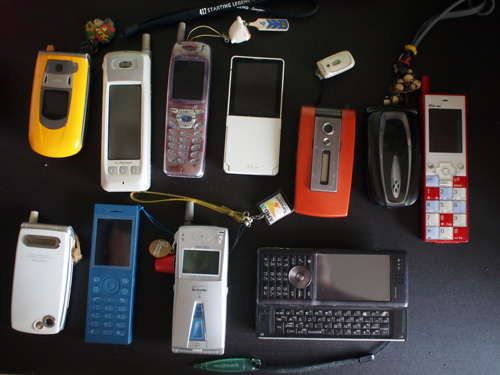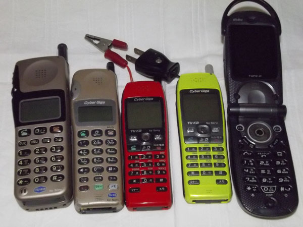 SONYのジョグダイヤル方式が大好きでtu-ka時代はそれだけを乗り継ぎました。赤いのは塗装がはげて自分で同じ色に塗装しなおした愛すべき一台。となりの黄色はもう発売がおわってるこの機種を探し歩いて手にいれた一台です。