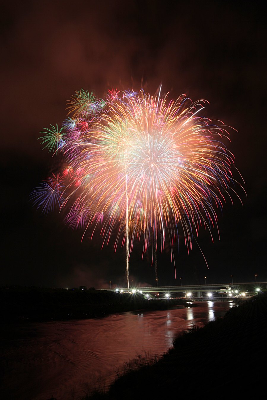 写真は河川敷の無料席からみた、大玉連発の様子。