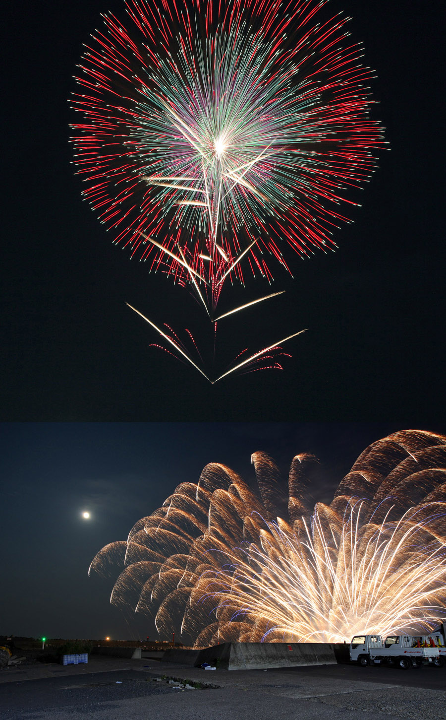 8号玉やスターマイン、創作花火などの競技大会も行われます。