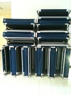 多すぎて、全部写らなかったのですが ビルの一角に大量の折りたたみベッドがありました。 どこかに一斉に並べるのか・・ 気になります。