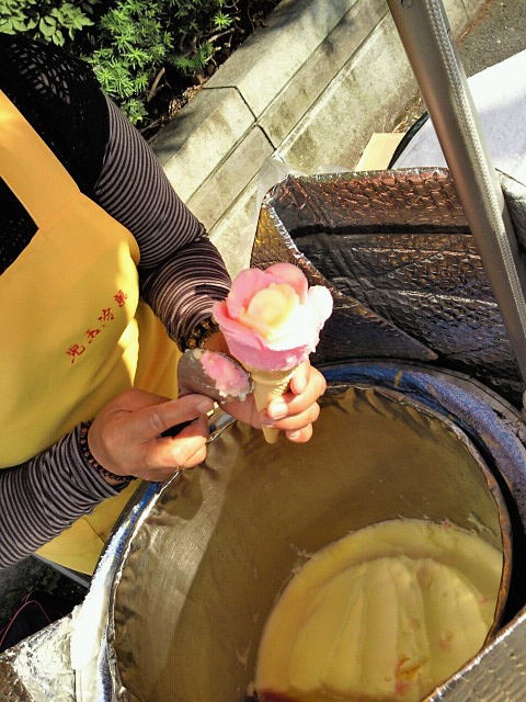 今日は晴天でアイスも売れていましたが、上着が必要な寒い日でもまだがんばっています。10月いっぱいだそうです。