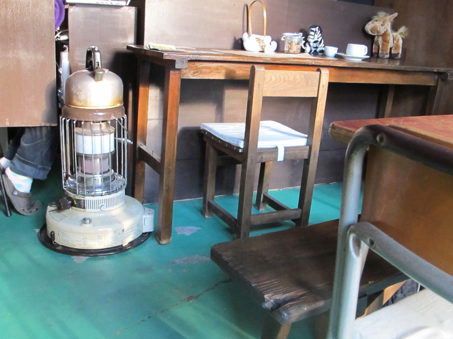 炎の見えない角度で恐縮です。たまに行くカフェでも石油ストーブがまだまだ鋭意稼働中でした。