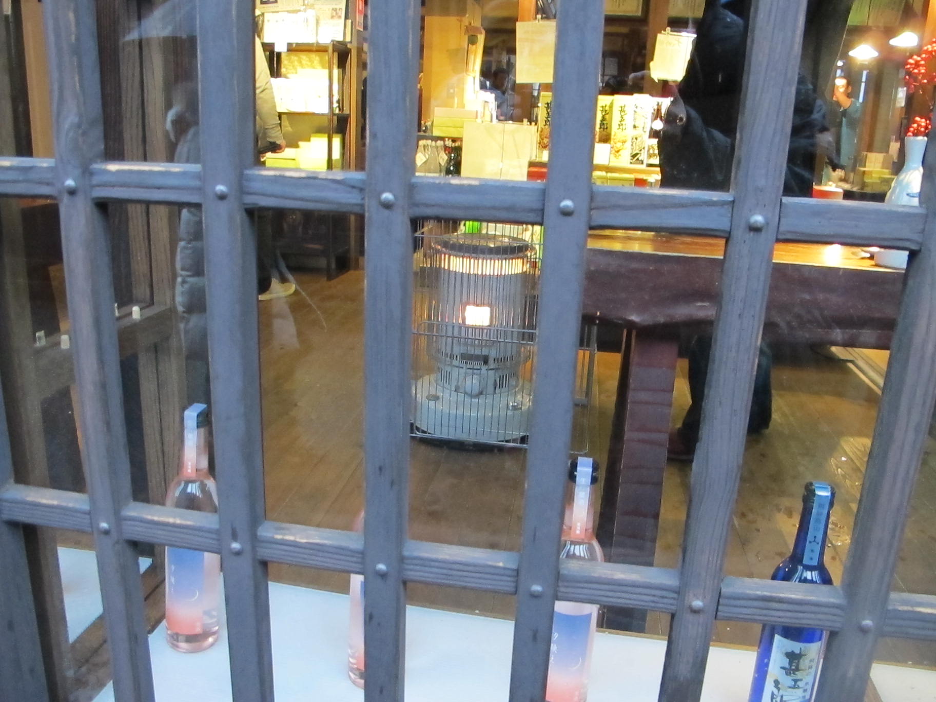 冬の飛騨高山に行って来ました。外国人にも大人気の観光地です。格子の向こうは思わず入って暖まりたくなるストーブが見えました。