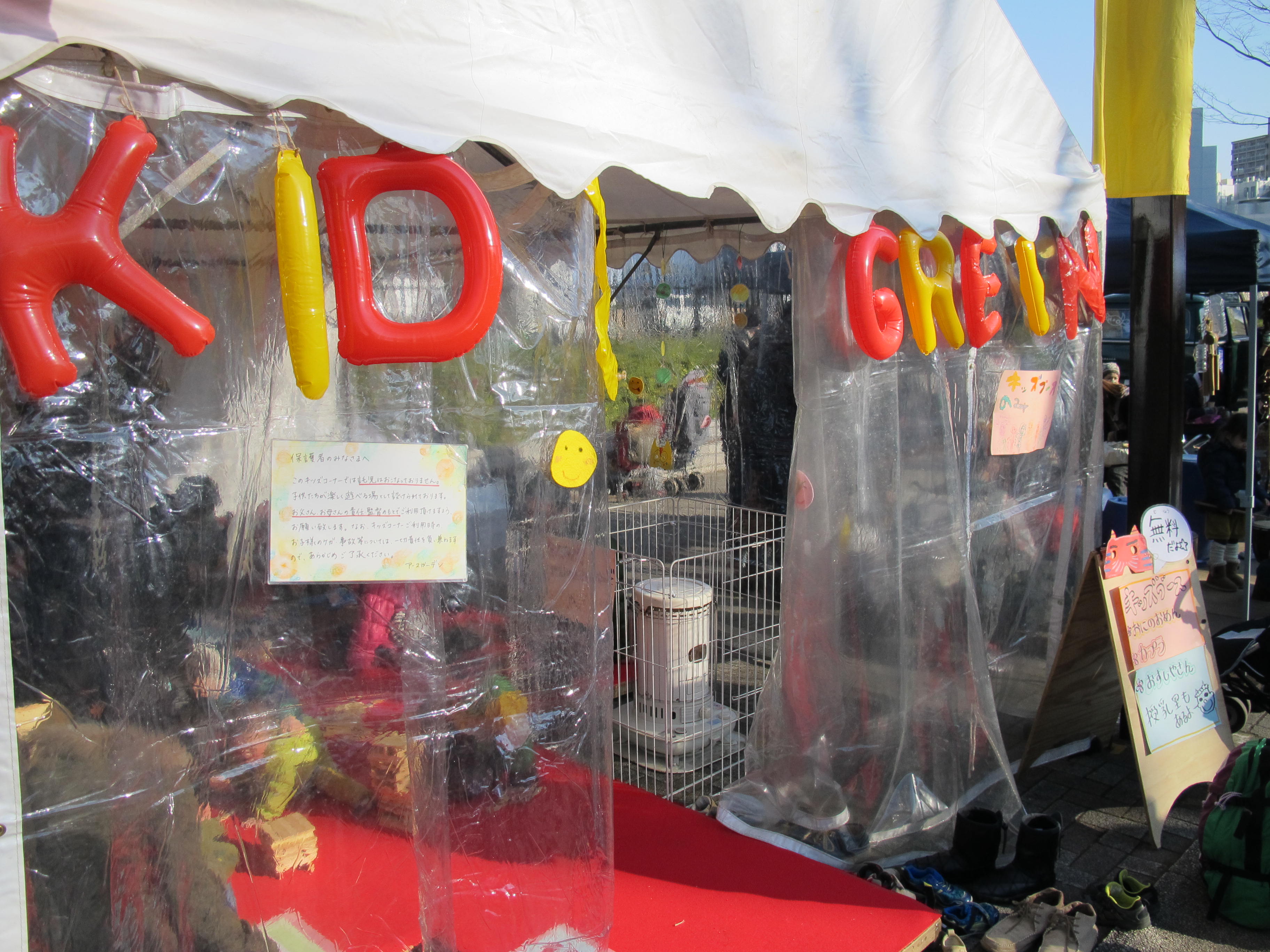 代々木公園のエコ系イベント会場にて。 冬の野外イベントでは石油ストーブは必須アイテムです。