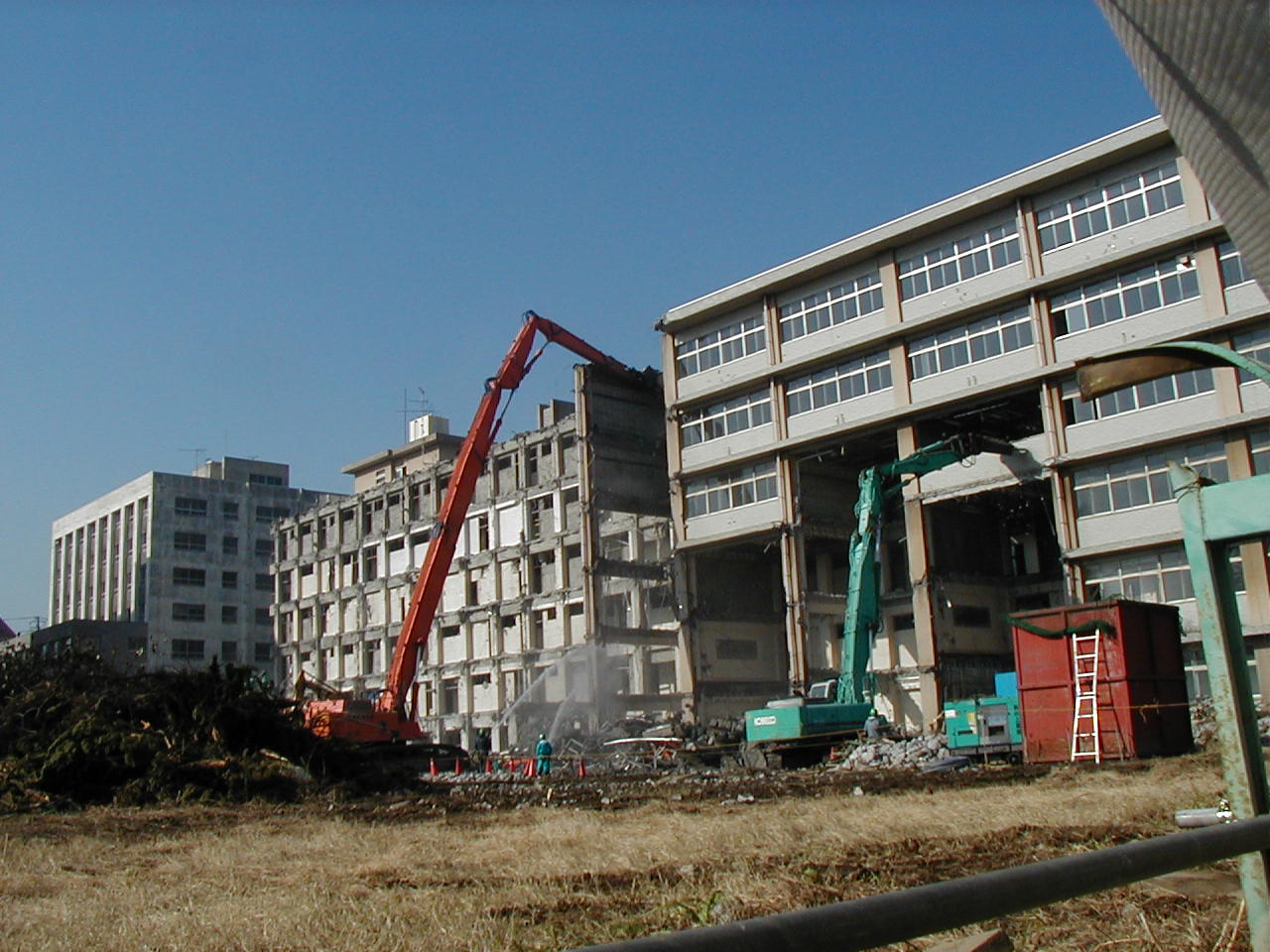 2005年1月、取り壊しが始まってまもないころの様子です。自分も妻も外語大出身なので、建物がなくなる前に見ておこう、と2人で訪ねた際に撮りました。ちょっとせつなかったです。