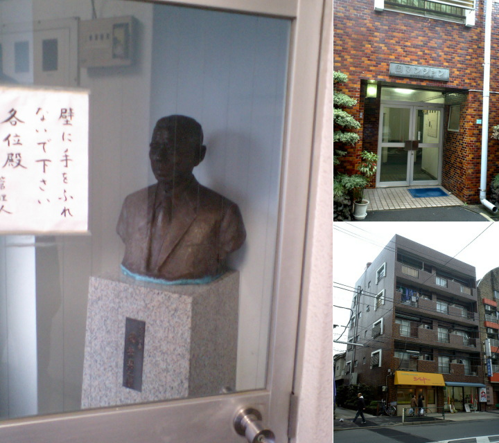 探す場所が違ったとの事なので改めて探した所,今でもありました岡マンションと銅像. あの銅像には「初代社長 岡幸男之像」とありましたよ.