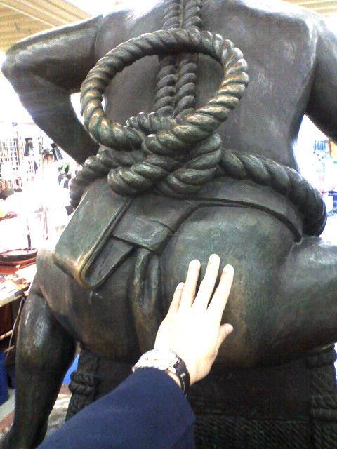 仕事で立ち寄ったのでタッチ。 右足側にはランドセルの少女がいたので、 いろんな意味で変質者扱いされないかドキドキの撮影でした。 以前、南口駅前で廃業した銭湯(ギャラリーに転用?)を発見、 結局跡利用の施設もやめてしまったと噂に聞きましたが、 帰りに駅ホームから眺めたら、また煙突はそそり立っていました。 次の機会には、そこの確認を含めて少しでも街を散策したいです。