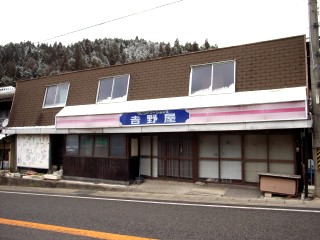 実家の近くだったので、正月帰省の時に見てきました。 地図では役場側の道にあるようだったので探しましたが、見当たりませんでした。 母によると、ちょうど地図にある辺りの「吉野家」というお店に自販機があったそうですが、ご主人が亡くなられてから閉店してしまったようです。 関係ないですが、役場の門松は林業の村ということで、竹ではなく杉で作られてました。