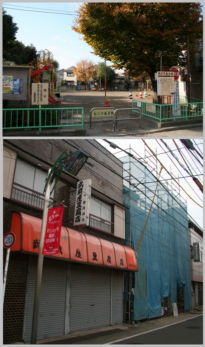 そこで、公園にお孫さんと遊びに来ていた御婦人に聞いてみたところ「そこのお豆腐屋さんの隣の工事中の建物が、昔はお肉屋さんだったけど」ということでした…。