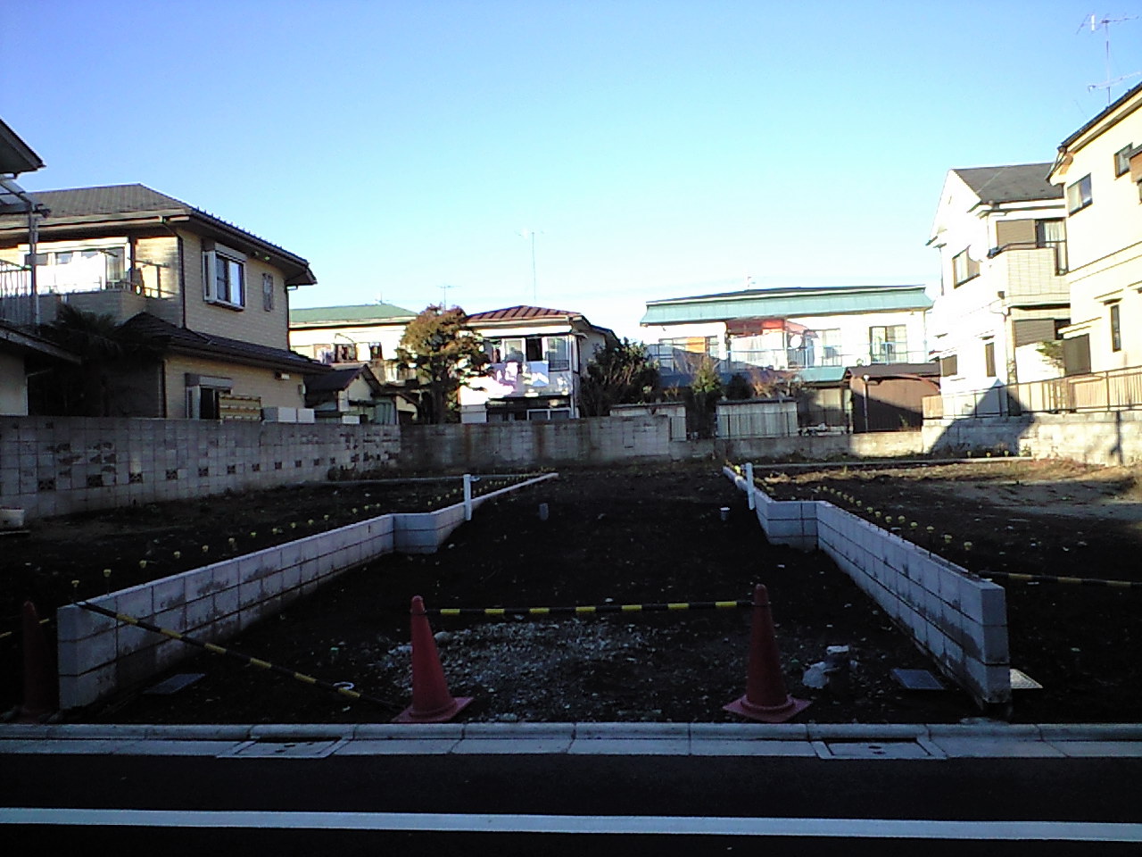 更地になって、土地は3分割(もしかすると4分割)されています。写真には写ってませんが、隅っこに簡易トイレも設置されて、工事する気満々ですが、この状態でけっこう時間が過ぎています。工事の概要の立看板等はありません。