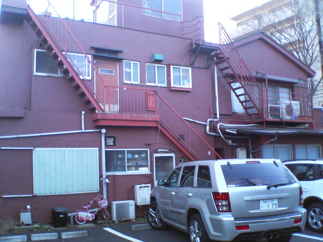 北側のテニスクラブ側から撮影。 成城通りに面している、古い建物がこちら。 エッシャーをほうふつさせる階段が印象的でした。