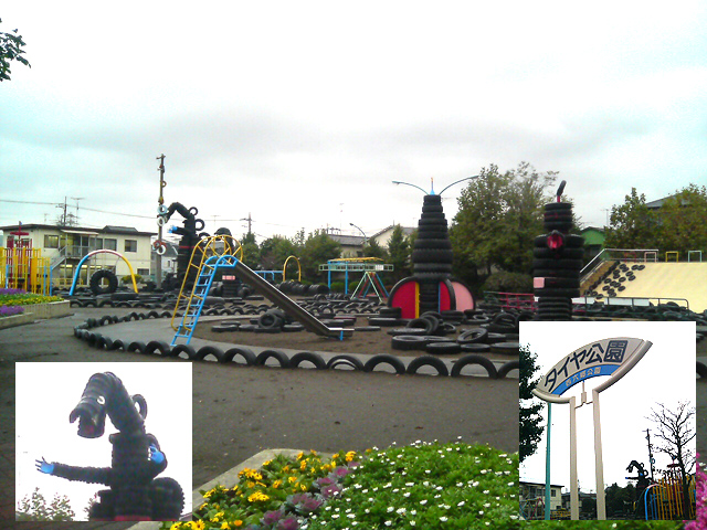 正式名「西六郷公園」、でも看板にも「タイヤ公園」と書いてあります。タイヤ天国、子供天国です。JR線路のすぐ脇なので電車からでも見ることができます(京浜東北線の北行がベストです)。