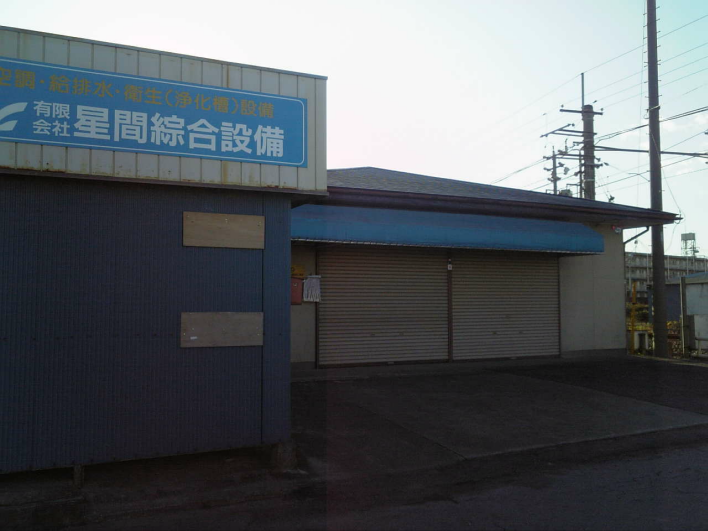 こちらは向かい側の元駄菓子屋です。私が高校1年の在学当時だった昭和58年(1983年)頃に開店されたお店でしたが、現在、確認したところ電気工事会社の事務所&倉庫関連でした。 私が在学中は左側の建物はログハウス風でチュリオを買って一息つけるベンチになっていました。