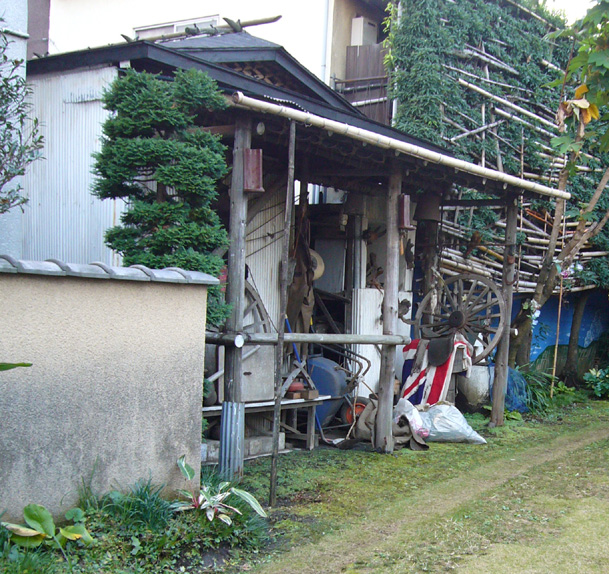 時々この前の道を通るのですが、今回の話を見るまで材木が立てかけてあるのは知ってましたが、西部劇を感じさせるような道具類があるのに気がつきませんでした。惜しいことをしてたんだなぁ。(笑)