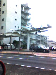 例の飛行機ですが、あれは「BELL HAND CLUB(ベルハンドクラブ)」という会員制のなんだかの敷地内にあるもので、実際には飛ばないみたいです。そこにはほかに、ベン○や○MWといった高級外国車がドカドカ停まっていて、庶民は立ち入れない空気がぷんぷんしています。おかげで、何をするところなのかさっぱりわかりません。お金持ちの知り合いがいらっしゃいましたら聞いてみてください。