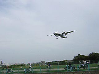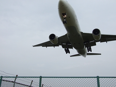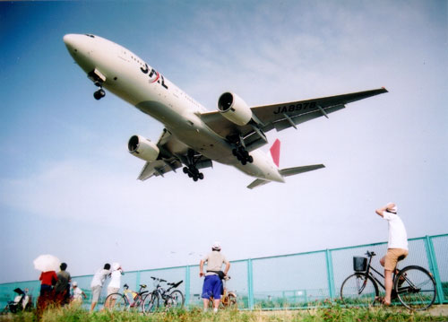 伊丹空港で飛行機が滑走路に着陸するすぐ手前に「千里川」があるのですが、その川の脇に立っているとまるで自分めがけて飛んでくる飛行機が自分の真上を通過して着陸します。