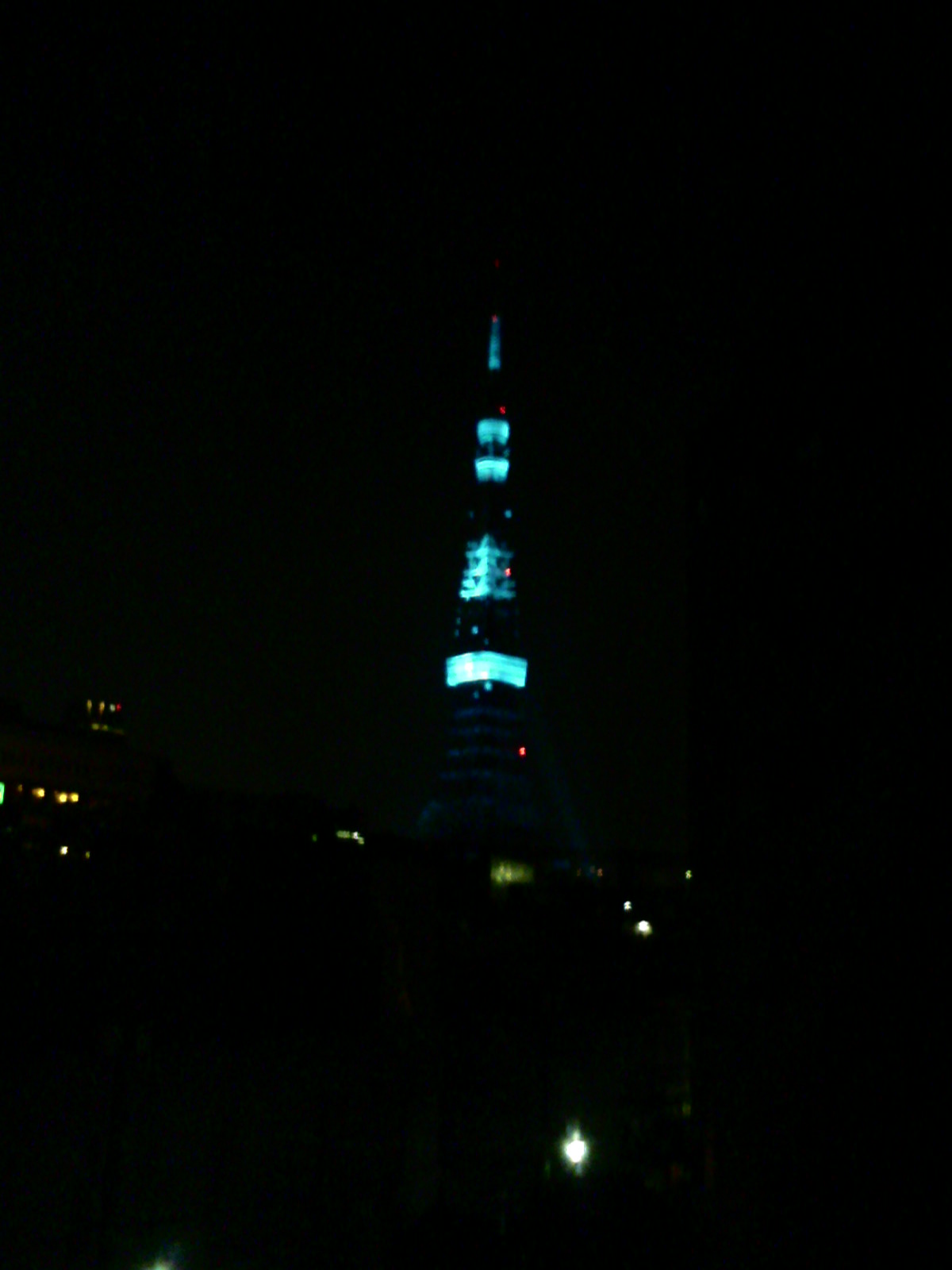 洗濯物を取り込もうとベランダ出てて、ふとタワーを見たら「何これ、青いじゃん!」。ピンクの時もキレイだけど、青いのもまた幻想的。冬の青いタワー、でもなんだか寒々しい...。夏にやってくれるといいかもねえ。