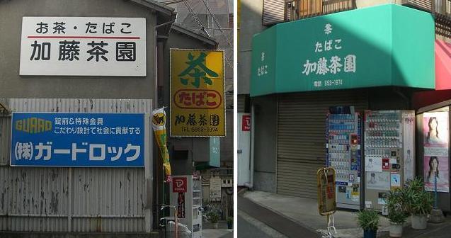 写真は2枚撮影しました(1枚しか投稿できないため、手元で少々加工しています)。向かって右手の写真は府道に面している側を撮影したもので、おそらくお店の正面です。向かって左手の写真は、府道を北から来た時に見える看板、です。おそらく、このどちらかをご覧になったのではないかと思います。