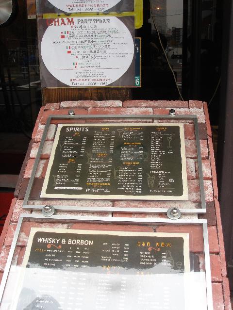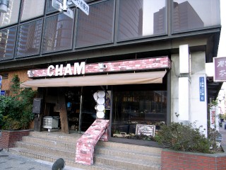 日曜日の午後2時頃なので、営業はしていませんでした。店の入り口には大きく『CHAM』と書いてあり、右の方に切れてしまいましたが『居酒屋 茶夢』の看板があります。