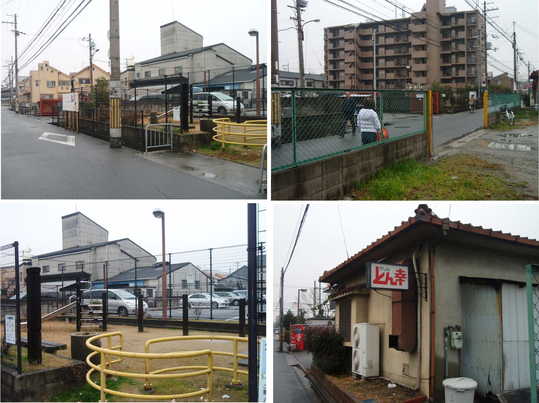 左下 正面入り口付近 住宅地にはさまれた道の突き当たりが公園です