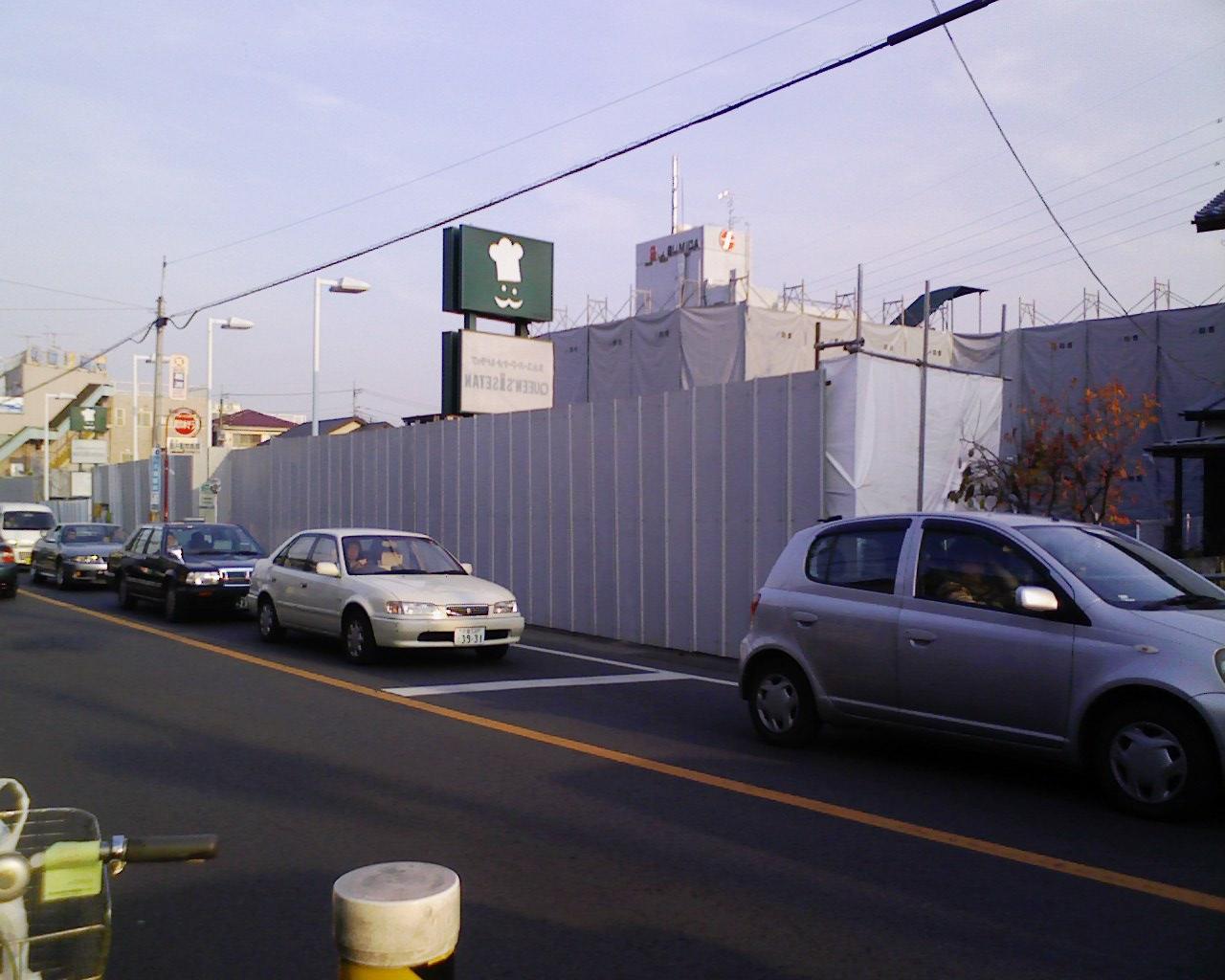道路ギリギリに柵があり、通るのに邪魔です。 駐車場の出口の坂の上が、壊されていました。 今年の7/31に閉店して以来、久しぶりにこの辺を通りました。 家から一番近いお店だったので、新しいお店ができてほしいけど、どうやらマンションが建つらしいです。