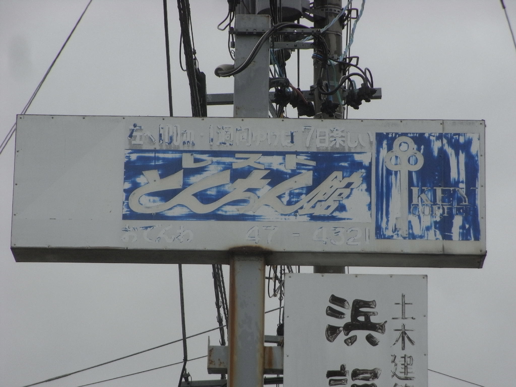 店舗はだいぶ前にアパートに建て替えられましたが、看板が残っていました。 国道147号の島内交差点すぐ東側に浜設計事務所さんの看板と一緒にあり、国道を東西どちらから来ても見ることが出来ます。 「1週間ゆけば7日楽しい」というフレーズが書かれています。