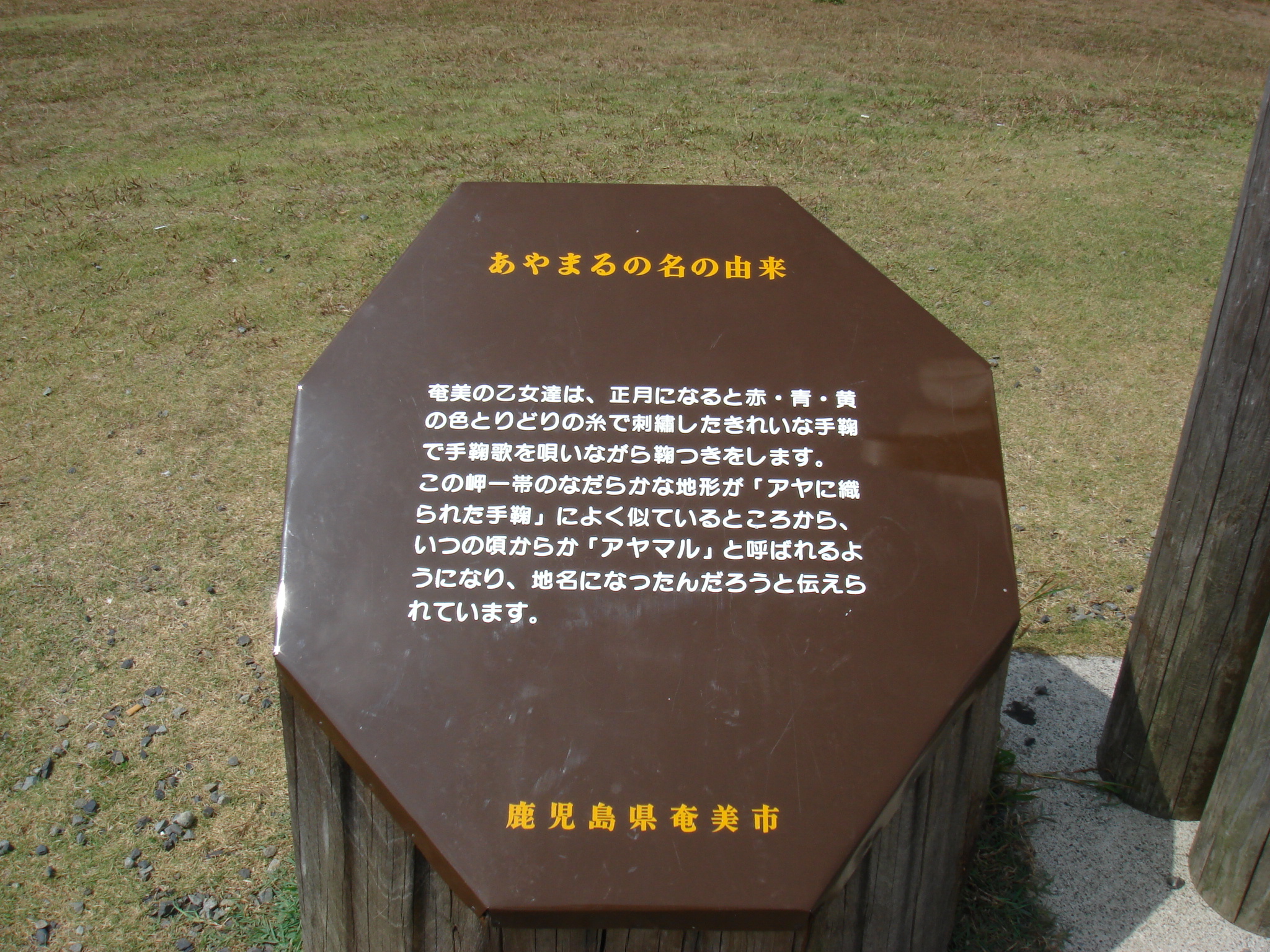 奄美大島にあるアヤマル岬。 もう10年以上前になりますが、奄美出身の人が「アヤマル岬で謝るとなんでも許してもらえる」と言っていました。 酒の席のことなので本当かどうかわかりませんが、いつか訪れて、いろんなことに「ごめんなさい」と言って許してもらいたいと思っています。 とても景色のいい観光名所らしいので、どんな場所なのか見てきていただけるとうれしいです。
