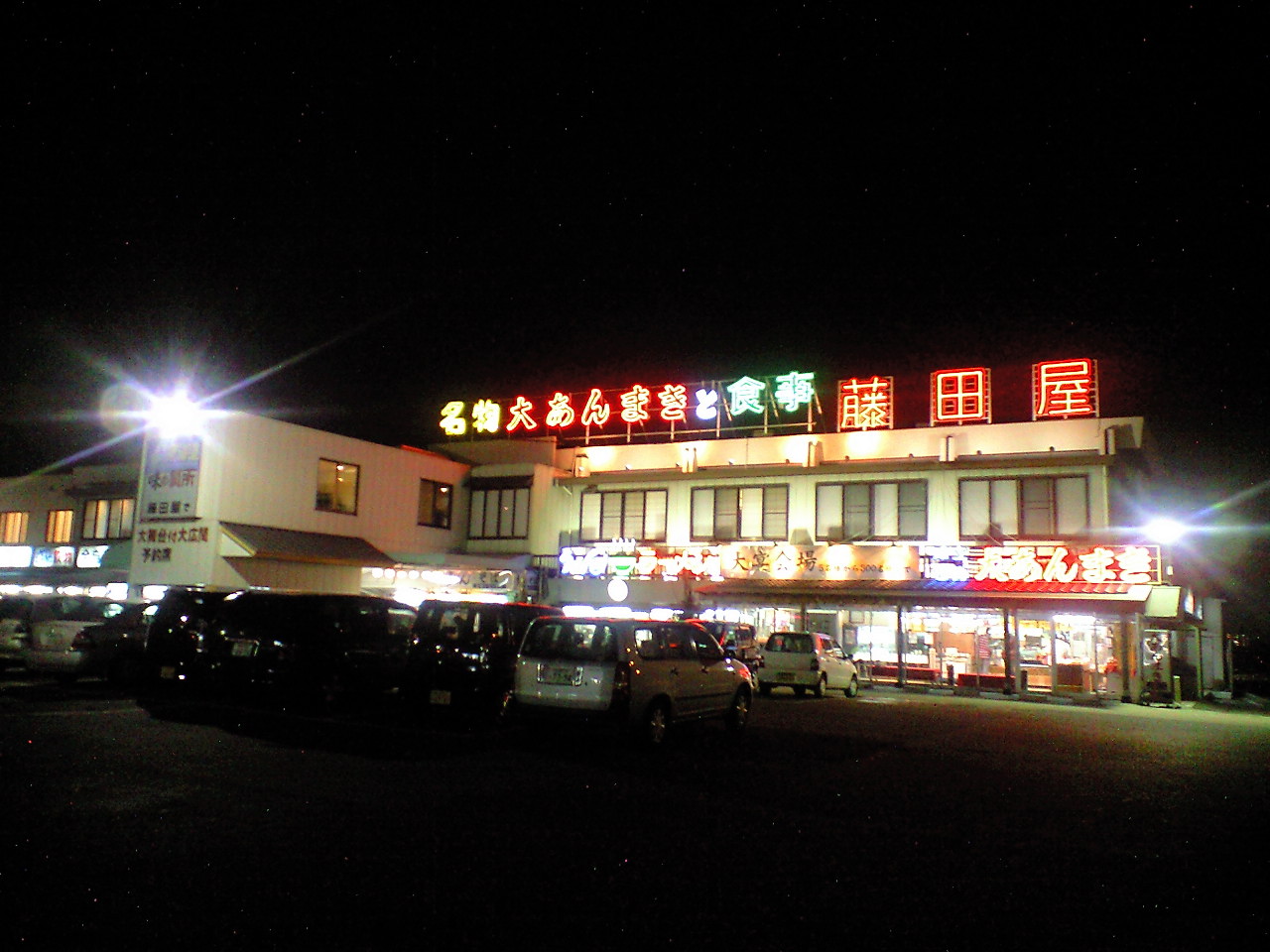 お礼が遅くなってすみません。 びよらさん、ありがとうございました! 大あんまきソングが流れていなかったのは残念ですが いまだ藤田屋の光り輝く健在ぶりが確認できて嬉しいです。 びよらさんの写真の腕がいいおかげかもしれませんが 昼間にしか行ったことがなかったのでこんなに綺麗だとは思いませんでした。 感動です!