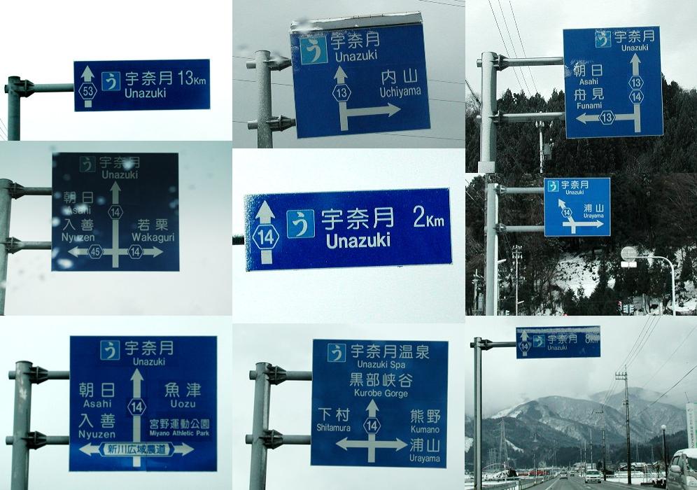 「う」マーク激写してきました。 国道8号線から黒部IC前を通る道筋の、 温泉までの全ての看板をコンプリートしたかったのですが、 うち、1枚の看板に雪が付着して、読めませんでした。 たぶん、osakaさんの写された看板です。 ついでに日帰りで温泉にも入ってきました。 温泉、最高です。