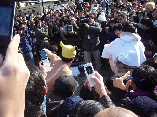 都内でも屈指の初詣スポットだけあってTV中継も行われていました。 お笑い芸人がネタを披露しにくるわけですが今年は小島よしおが来ていて幾重にも人垣が出来て大変な状況でした。 何とか写真に撮ろうとチャレンジしましたが身の危険を感じる程の混雑で何とも中途半端な写りとなってしまいました・・・ 因みにこの後、オリエンタルラジオも来ましたよ。