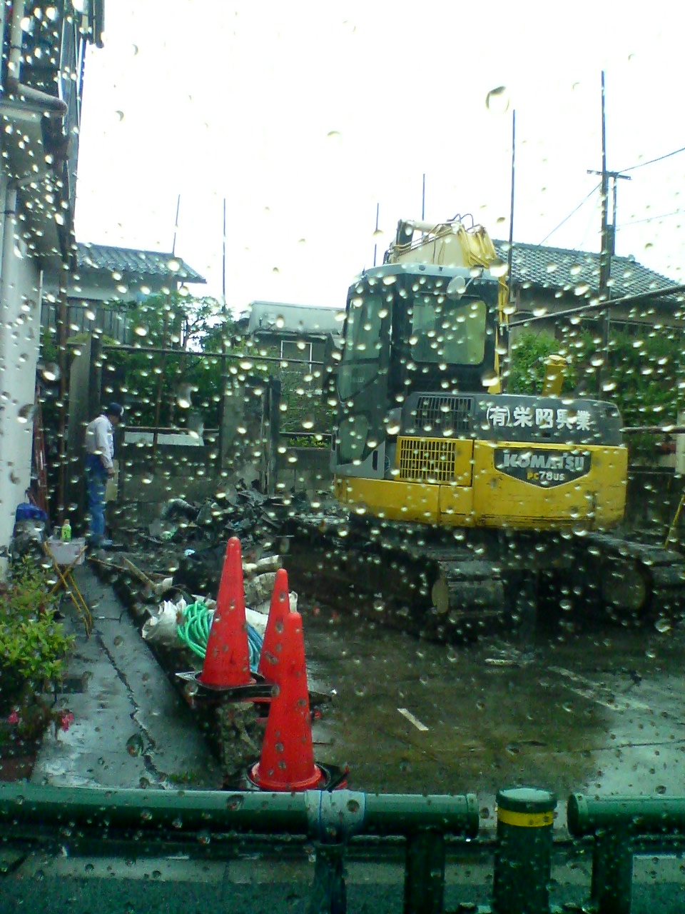 私も通勤で使う経路なので、 あのおじさんにはいつもにらまれてました。 自動販売機も撤去されたし、 あのおじさんも見かけないなぁと思っていたら、 なんと奥のご自宅が解体中でした。 真っ黒になっていることから、どうやら火事になった模様です。 おじさん、元気でいらっしゃると良いのですが。 信号で止まった車中からの写真ですので見づらいかもしれません。