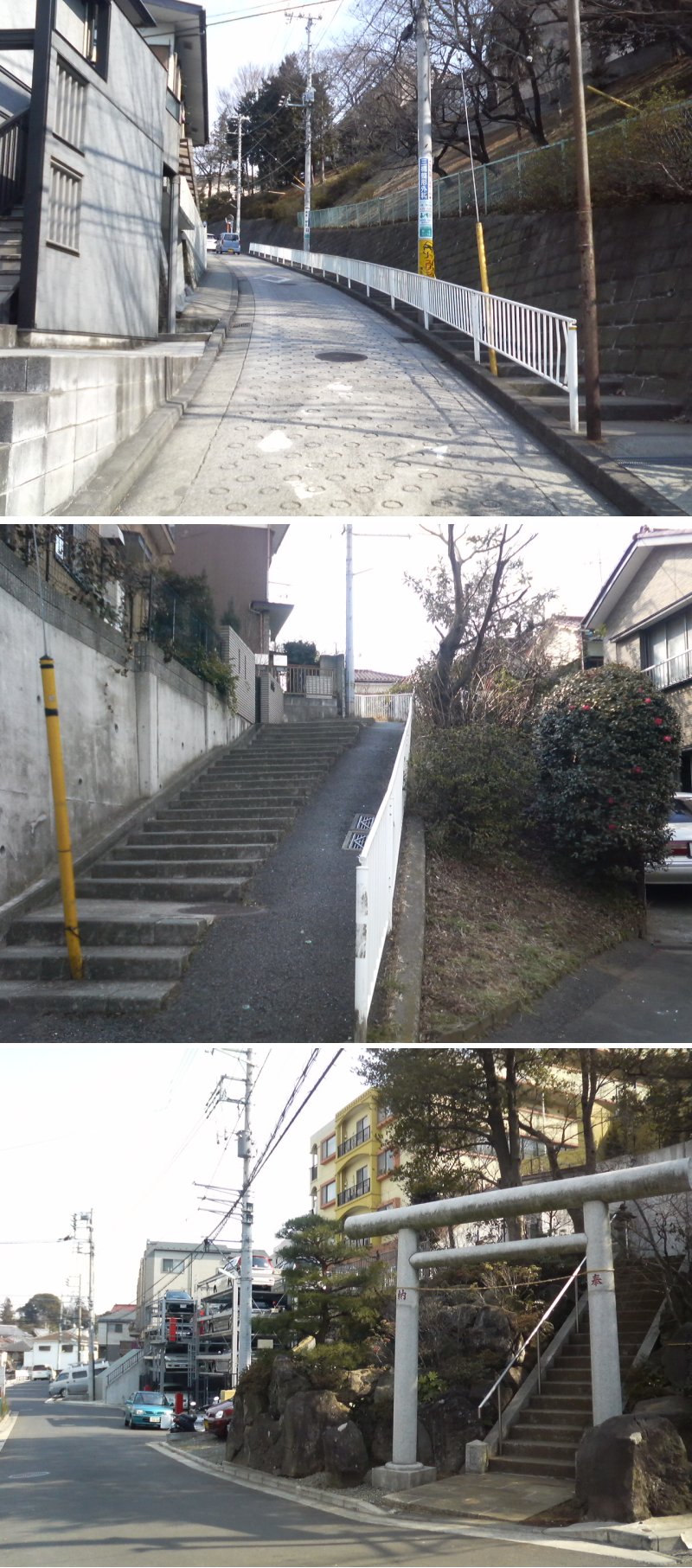 付近の写真です 1枚目、菊名小学校北側の坂道 2枚目、かづみ荘前の坂道 3枚目、2枚目の坂道を下りた場所 近辺は随分開発されて当時と風景は変わってしまってると 思われますがご確認下さいませ。