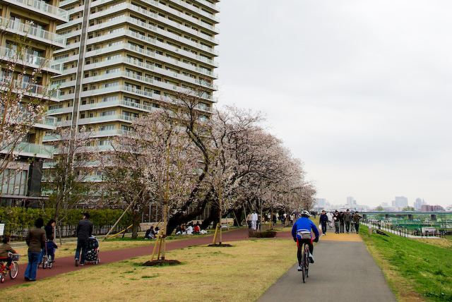 ガス橋緑地からガス橋方向に向いて、去年の春に撮った写真です。 まだたくさん桜の木はありますね。 川沿いはいろいろ整備されて、キレイになっていますよ。
