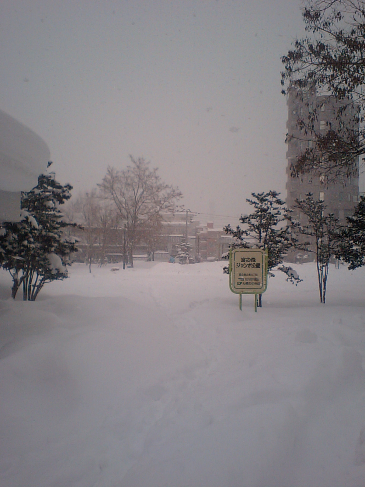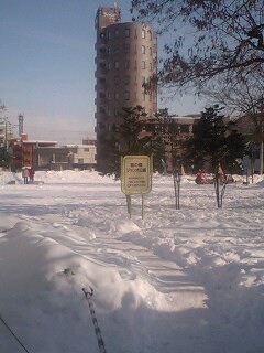 家の近所でしたので、携帯カメラで撮ってきました。トランポリンは冬ということもあってありませんでしたが、近くにある保育園の子供達が楽しそうに雪で遊んでいました。それもあってあまり近づいて撮影してこれませんでした。すみません。