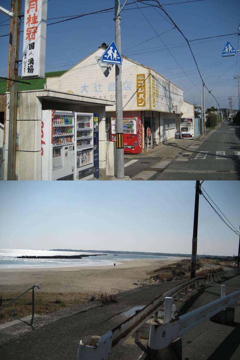 昔つきあってたカレがサーフィンをやってて 国府の浜というところによく行きました。 確か三角ポイントいう名前だったと思います。 地元のおじさんがやってる駐車場に車を停めて そこから海に出るのにゴルフ場を横切って 行くんだったと思います。 周りは何もなくて昼食は近くの古い食料雑貨店みたいな ところでカップラーメンを食べたりしました。 お店の中でカップラーメンが食べれるようになってました。 できればそのお店も見てきてくれたらうれしいです!