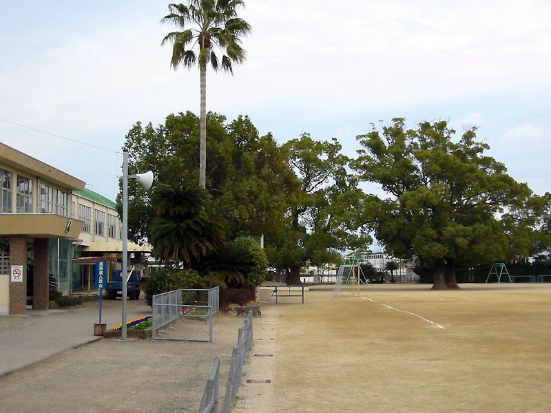 続いて、校庭の写真です。楠の木との事で、もし小学校が正しければ、写真に写っているのではないかと思うのですが、如何でしょうか?