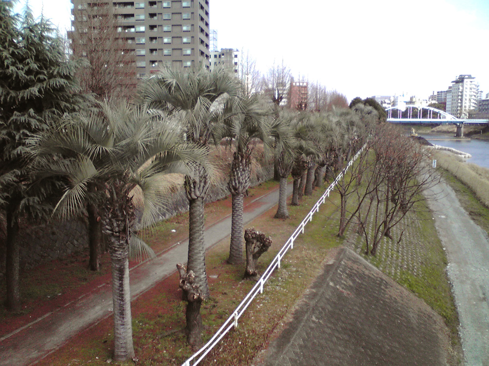 済みません。訂正です。 前回の投稿写真はひとつ上流の銀座橋からの写真でした。 新代継橋からの写真ではちゃんとヤシでした。