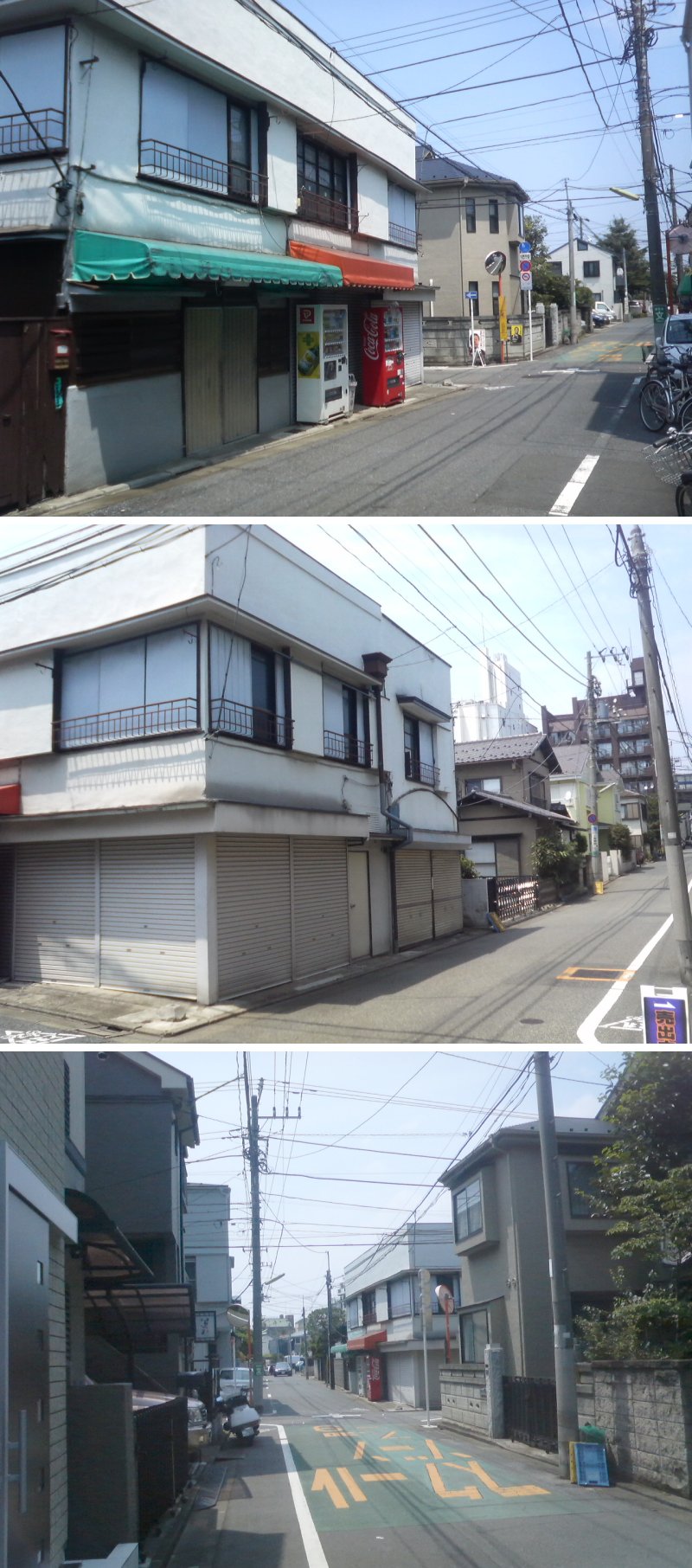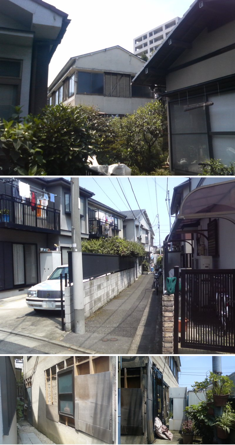 20数年前の地図で確認し見てきました。 建物はおそらく当時のままと推測しますが、至る所の壁が剥がされ柱も剥き出し状態、 しかしドアや窓枠が綺麗なものに付け替えられ、一見リフォームの最中にも伺えますが、 地図上では居住者表記も無く(空白)、もう長い間空家状態ではないかと思われます。 写真1枚目は東側より撮影したものです。 2枚目、隠れてますがこの路地の奥に富士見荘、3枚目は入口の前です。