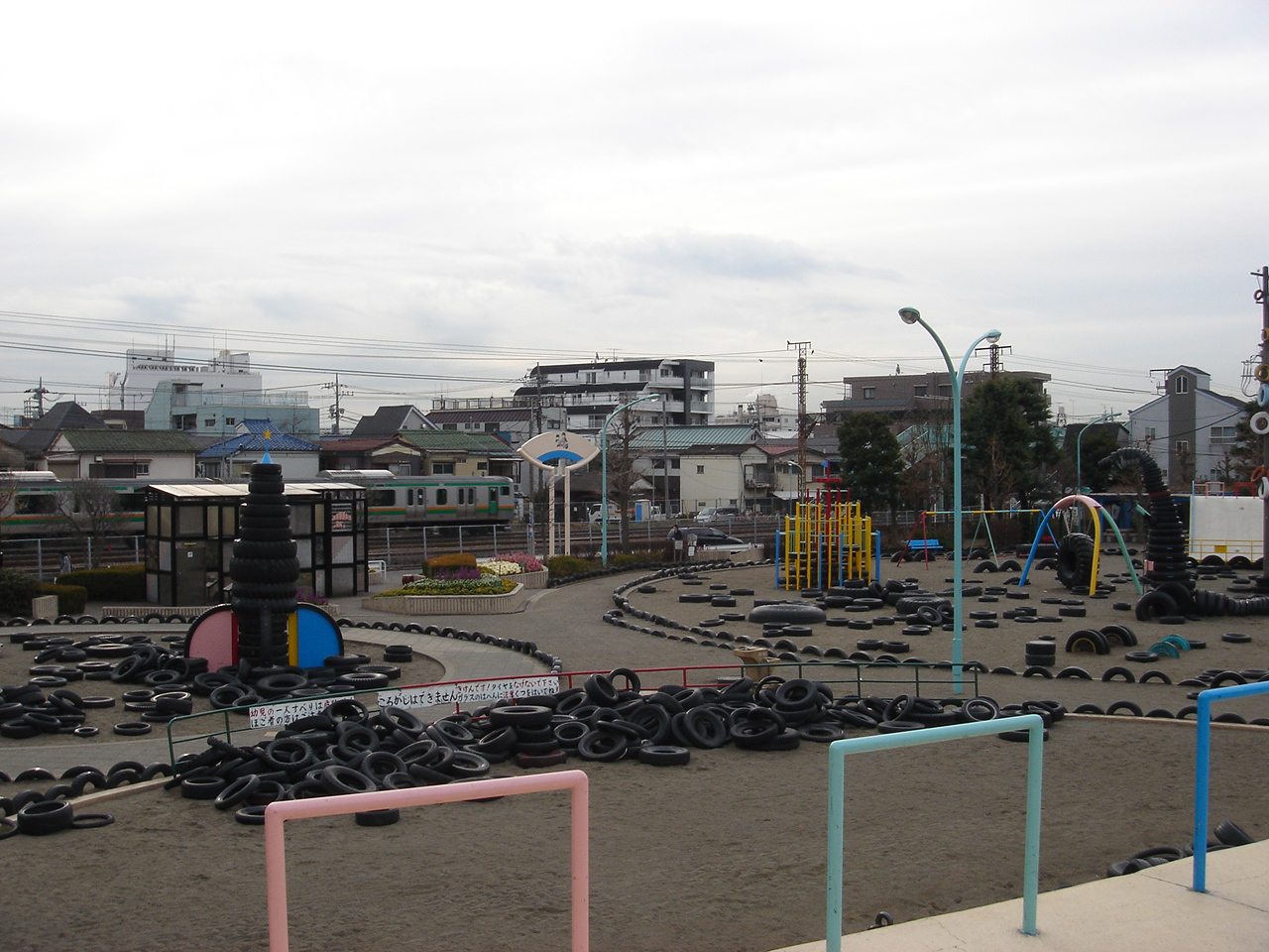 JR京浜東北線、川崎〜蒲田の間にある「タイヤ公園」。