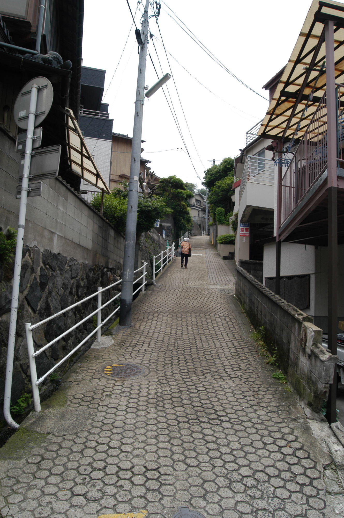 伊良林小学校から竹ん芸で有名な若宮稲荷神社の方へ抜ける坂道ですね。確かに亀の甲タイプの滑り止めが施されています、この タイプの坂道は坂の多い長崎市内には何ヶ所もあり「かめのこ坂」 と呼ばれているようです。
