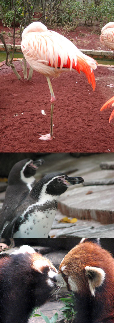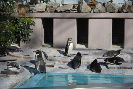 現在、フラミンゴはアイガモと一緒に暮らしています。 ペンギンは、大きな水槽つきの独立展示で暮らしていました。 においは それなりにしますが、動物公園内全体が適度に動物くさいので、そんなに気にならない感じでした。 巨大なリクガメ達も、アクリル張りの屋根つきの小屋で元気に暮らしてますよ。